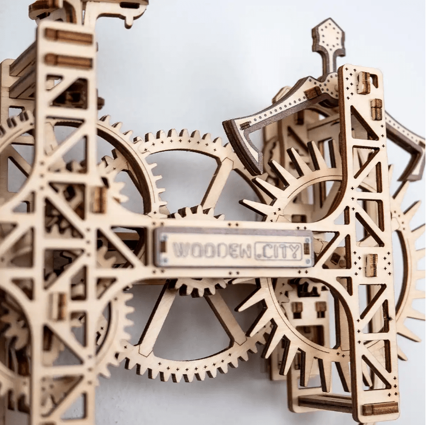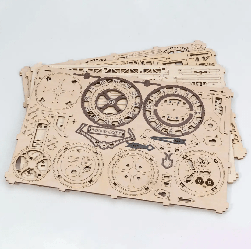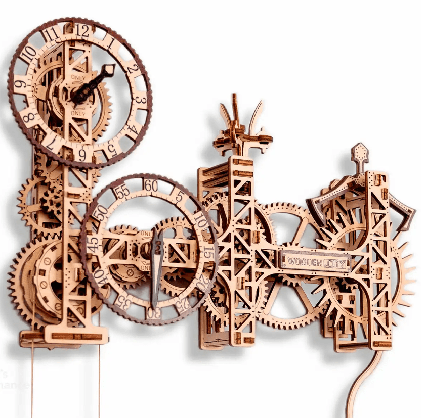 Sākums Konstruktori Koka konstruktori 3D koka celtnieks Steampunk sienas pulkstenis