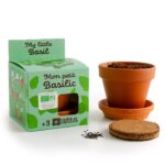 Dārzkopības komplekts bērniem: sējiet baziliku! Izaudzējiet garšīgu baziliku iekštelpās vai ārā ar šo dārza komplektu bērniem. Komplektā ir viss: sēklas, augsne, podiņš, apakštasīte, instrukcijas Nekas nevar būt vienkāršāk, un tas ir lielisks veids, kā iepazīstināt bērnus ar dārzkopību. Bazilika sēklas ir bioloģiskas. Kas ir bazilika stādīšanas komplektā bērniem ? 1 terakotas podiņš un tā apakštasīte, diametrs 8 cm. 1 šķīvis ar mēslotu kokosriekstu augsni, kas ir rehidratējama, lai to varētu izmantot kā augsnes barotni. 1 paciņa bioloģiski audzētu* lielu zaļo bazilika sēklu. *Sēklas no bioloģiskās lauksaimniecības. Ecocert sertifikāts
