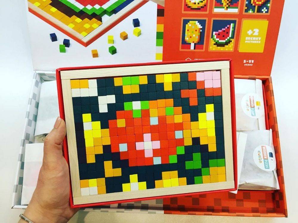 Koka mozaīka “Augļi un dārzeņi”. Koka izglītojošas rotaļlietas, kas izgatavotas no īsta koka – kļavas un dižskābarža – no nepiesārņota Karpatu apgabala. Mēs izmantojam tikai netoksiskas krāsas uz ūdens bāzes, kas ir drošas visu vecumu bērniem. Visi CUBIKA produkti ir sertificēti saskaņā ar Eiropas kvalitātes un drošības sertifikātiem. Izstrādāti, pamatojoties uz Montessori koncepciju “Montessori play; learn”. Educational Eco Wooden Mosaic Pixels Fantasy – koka mozaīkas spēļu komplekts sastāv no daudzkrāsainiem koka klucīšiem – pikseļiem, 7 attēlu mozaīkas diagrammām (5 daudzkrāsainas un 2 melnbaltas diagrammas – pārsteigumi), krāsām un skaitļiem, kas atbilst uzskates lapai. Koka pikseļi ļauj apvienot un savienot 7 attēlus ar fantāzijas pasaules motīviem. Komplektā ir 400 punktiņi. Šī rotaļlieta palīdz bērnam mācīties: