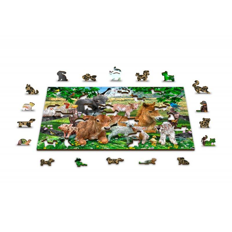 Koka puzle WOODEN CITY “Farm cubs” 300 gabaliņi. “Wooden City” puzles, kas veidotas videi draudzīgā veidā, apvieno augstas kvalitātes divpusējas koka puzles prieku un kaprīzas, netradicionālas formas detaļu burvību. Atklājiet, ka katra unikālā puzle ir stāsts un piedzīvojums, kas aizrauj jūsu iztēli. Katrā puzlē ir dažādas unikālas formas, figūras un simboli. Domājiet par to kā par noslēpumainiem maziem pārsteigumiem, ko piedāvā katra puzle. Šīs puzles piedāvā augstas kvalitātes, bagātīgu, skaistu attēlu priekšpusē un detalizētu tapetes stila rakstu aizmugurē. Koka pilsētas divpusējās puzles piedāvā unikālu būvēšanas pieredzi, kas noteikti iepriecinās visu vecumu puzļu entuziastus. Izvairoties no plastmasas saraucošās plēves, Wooden City puzles ir izgatavotas no dabīga kartona un videi draudzīgā iepakojumā. Ražošanas procesā izmantotais materiāls ir augsta blīvuma kokšķiedras kartons (HDF), kas izgatavots no dabīgām koksnes šķiedrām. Visas puzles ir izgatavotas no 100 % bērniem drošiem materiāliem un piedāvā pieredzi visu līmeņu puzles veidotājiem. UZMANĪBU! Nav piemērots bērniem līdz 3 gadu vecumam. Salocītās puzles izmēri: 375 x 254 mm