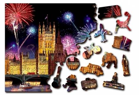 Koka kastīte ar divām daļām Puzlei ir daudz unikālu formu. 254 x 182 mm Gabaliņu skaits: 150 gabaliņi Biezums: 3-4 mm Montāžas laiks: 60-90 minūtes Vecuma ierobežojums: 8+.