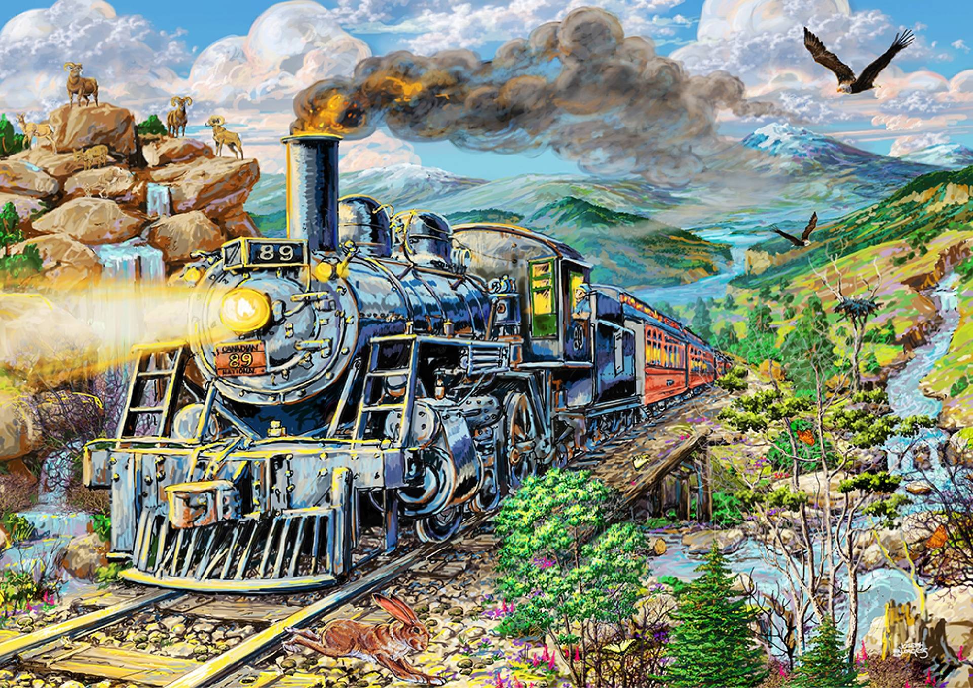 Iepazīstiet vilcienu vēsturi Salocītās puzles izmēri: 50×70 UZMANĪBU: nav piemērots bērniem līdz 3 gadu vecumam. Ražošanas valsts: Kanāda  Izcelsmes valsts: