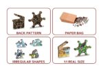 Koka puzle ar abpusējiem gabaliņiem Gabaliņu skaits: 200, ar 20 unikālām formām Risināšanas laiks: 180 minūtes Saliekamais izmērs: 254×182 mm Vecuma diapazons: 10+ Lieliski piemērots dāvanām CE, EN-71, ASTM D-4236 un ASTM D-4236 apstiprināts un sertificēts Izgatavots no 100% bērniem drošiem materiāliem Ražots ES.