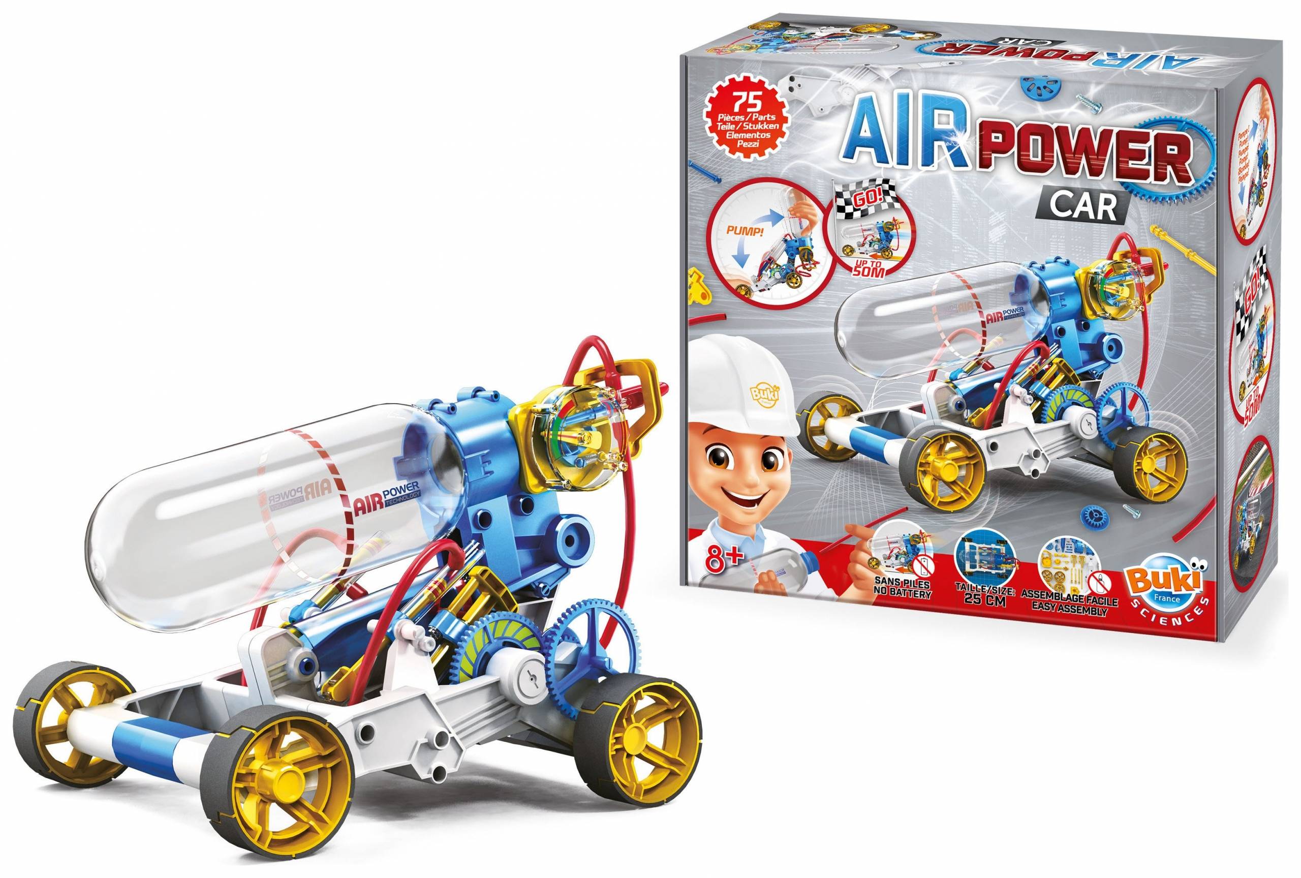 Automašīnas darbina benzīns, dīzeļdegviela, elektrība… Šis – ar gaisu! Sekojiet detalizētajām instrukcijām, lai no 75 dažādām formām un detaļām uzbūvētu savu unikālu saspiestā gaisa transportlīdzekli. Konstruēšanai nav nepieciešama līme. Nav nepieciešamas baterijas. Saliktā modeļa izmērs – 25 cm. Braucamais attālums – līdz 50 m. https://www.youtube.com/watch?v=CAzNWLqmpiI Bērniem no 8 gadu vecuma. Nav piemērots bērniem līdz 3 gadu vecumam – daudz mazu detaļu. Francija Skatīt visus mūsu globusus šeit: https: //gaubliai.lt/ Skatīt visus mūsu konstruktoru komplektus šeit.