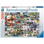Puzle VW kemperu pasaulē , 3000d Ravensburger jau vairāk nekā 130 gadus ražo augstākās kvalitātes puzles. Pat puzles cienītāji ar visizsmalcinātāko gaumi atradīs sev piemērotu puzli! Ražots Vācijā Izmēri: 122 x 82 cm Piemērots no 8 gadu vecuma.