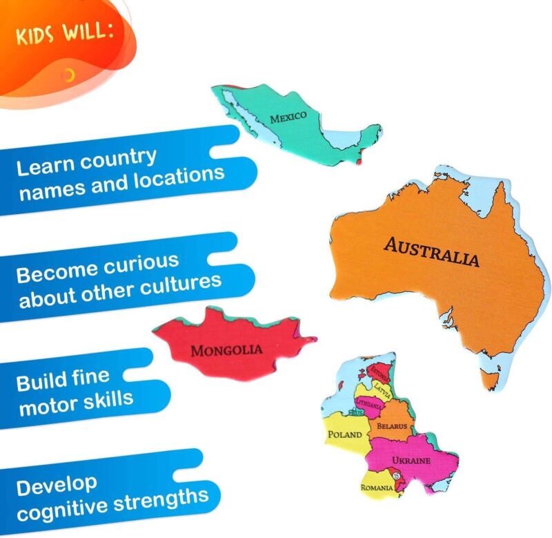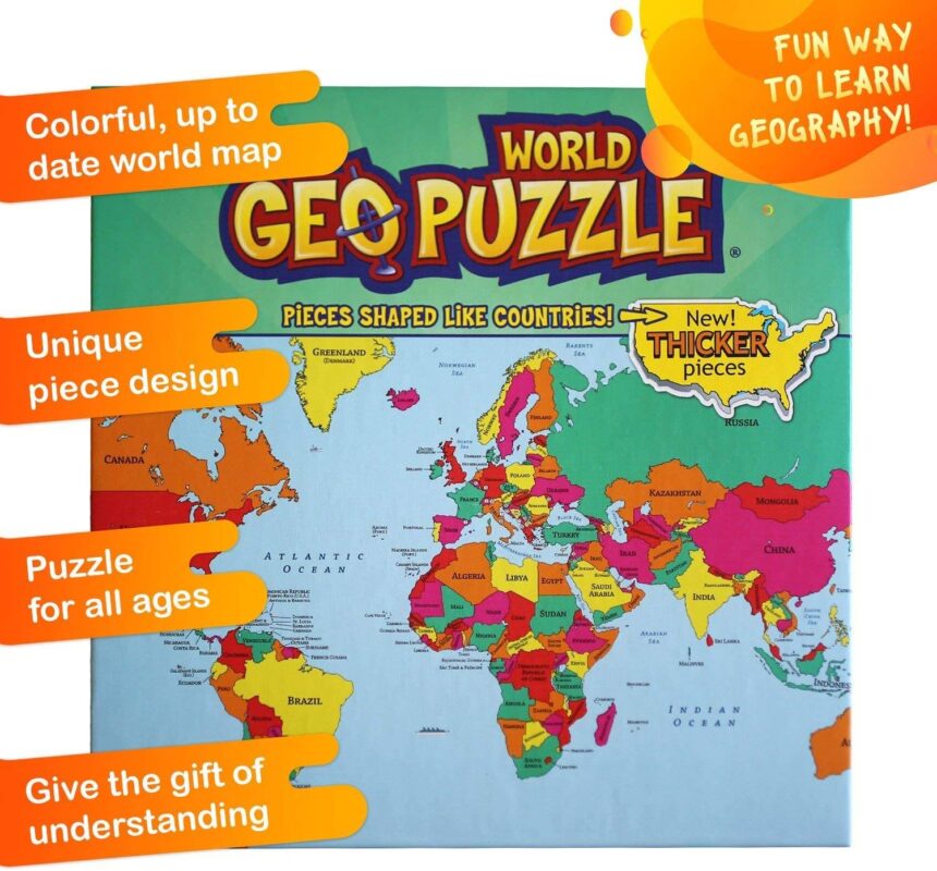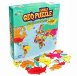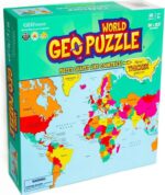 Krāsaina pasaules kartes puzle, lai iepazīstinātu bērnus ar ģeogrāfijas zinātni. Mācīšanās var būt patiešām jautra. Daudzi šīs unikālās puzles elementi ir veidoti kā dažādas valstis, tāpēc to ir viegli salikt kopā. Puzle palīdz attīstīt sīko motoriku, izziņu, valodu un problēmu risināšanu. 68 detaļas. Bērniem no 4 gadu vecuma. Brīdinājums: nav piemērots bērniem līdz 3 gadu vecumam, daudz sīku detaļu. Puzles izmēri: 26×12,5 cm. Ražots Vācijā. Visas mūsu puzles šeit: www.smartworld.lt Visi mūsu globusi šeit: www.gaubliai.lt