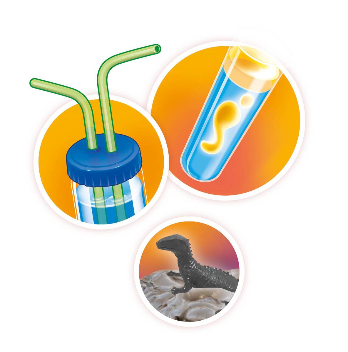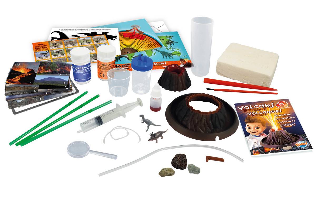 Atklājiet 15 dažādus eksperimentus ar vulkāniem un dinozauriem.