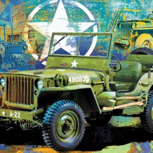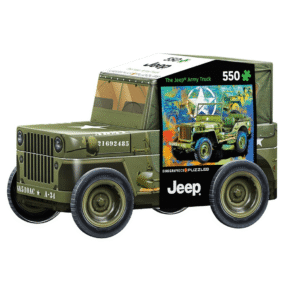 Militārais džips 550 gabaliņu puzle Kastes izmērs: 21,59 x 13,97 x 16,51 cm Pabeigtas puzles izmērs: 48 x 33 cm